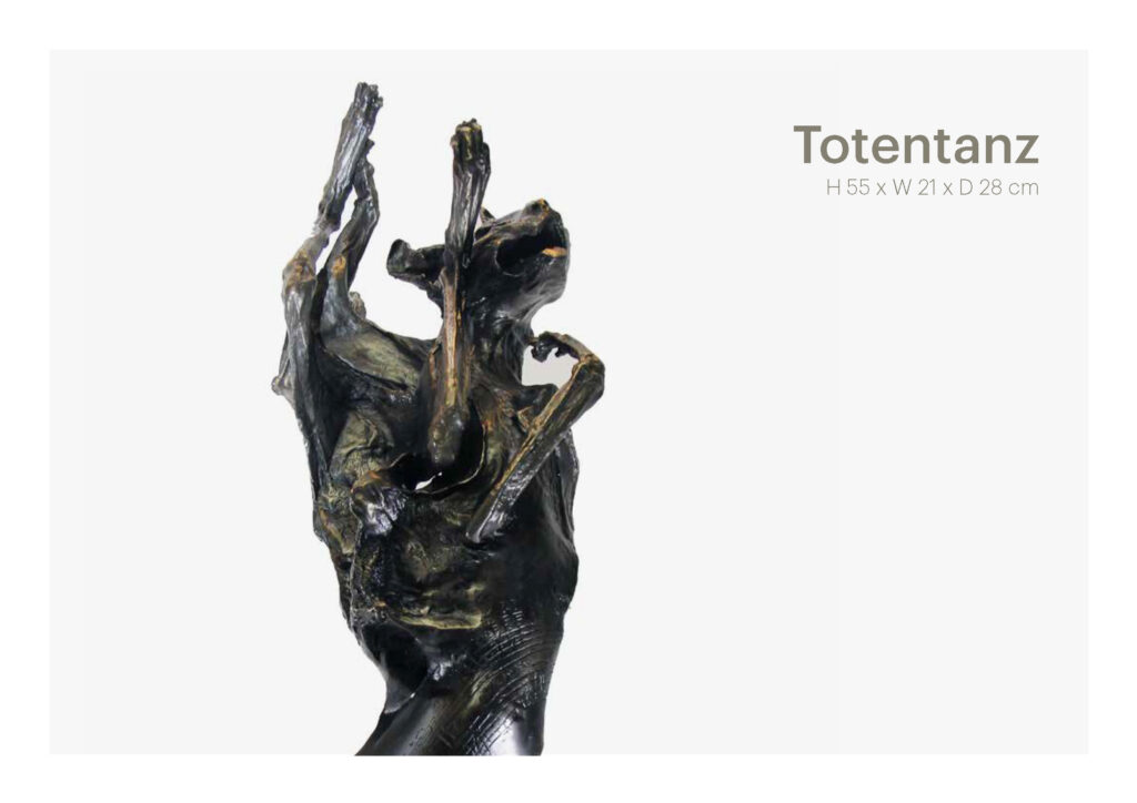 Intertwining the elemental themes of creation and destruction, the sculpture draws upon historical allegories, such as the Dance Macabre or Dance of Death, to deepen its resonance. These elements coalesce into a profound reflection on the universality of death and rebirth. Themes of creation, allure, demise, and renewal, mingled with the illusory solidity of existence, craft a synthesis that invites contemplation on eternal and immediate matters.